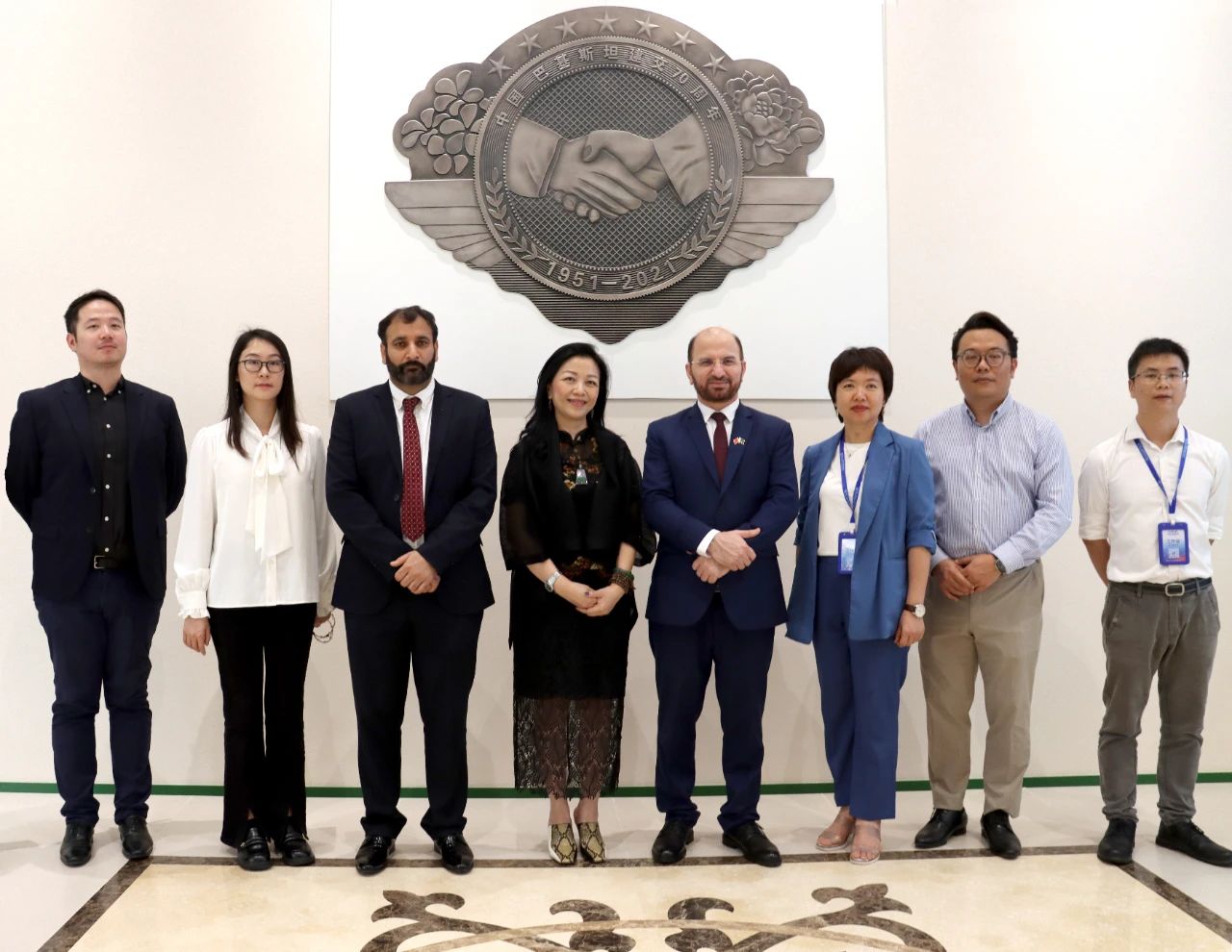 巴基斯坦駐廣州總領(lǐng)事館代理總領(lǐng)事一行在匯聚中心巴基斯坦館合影