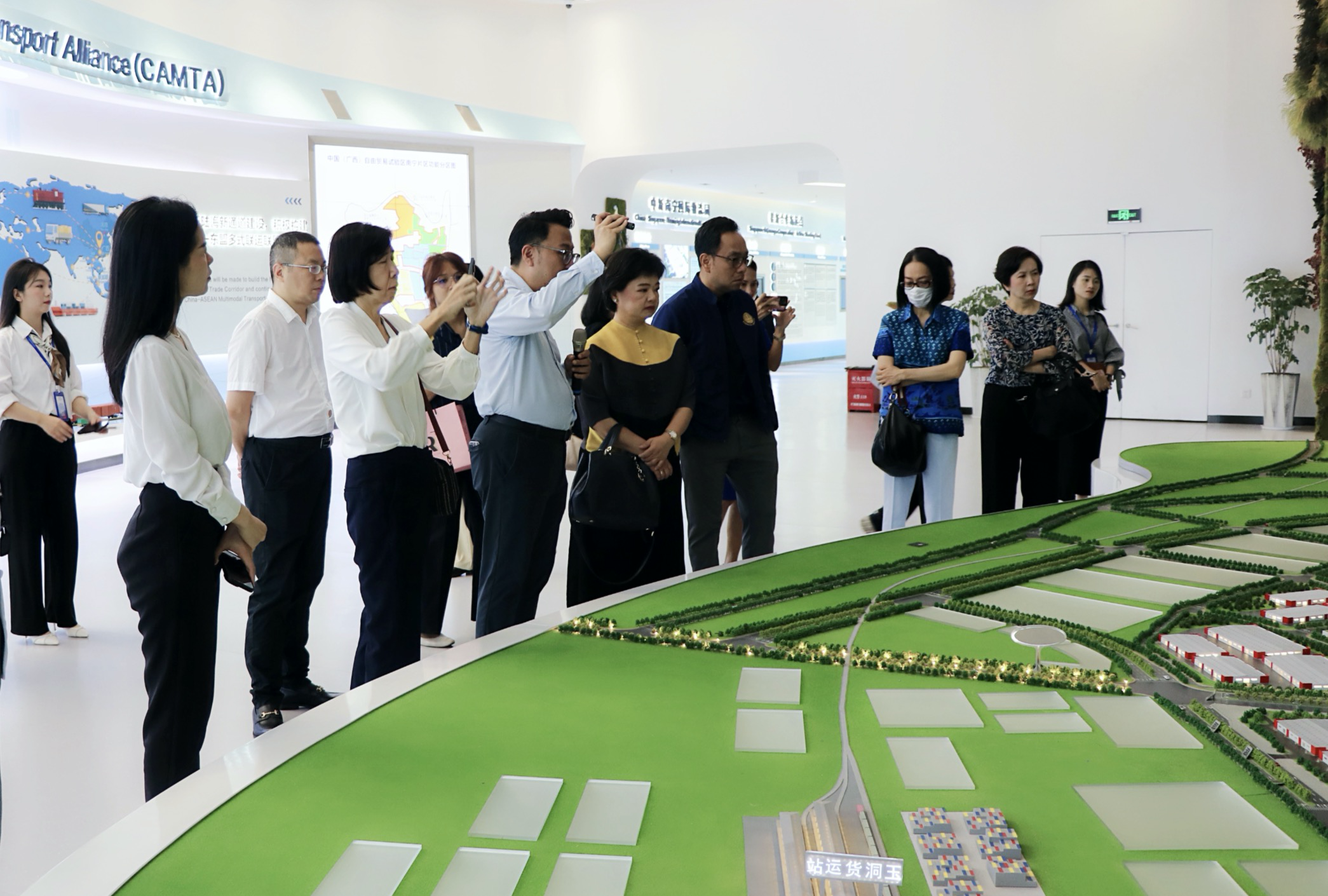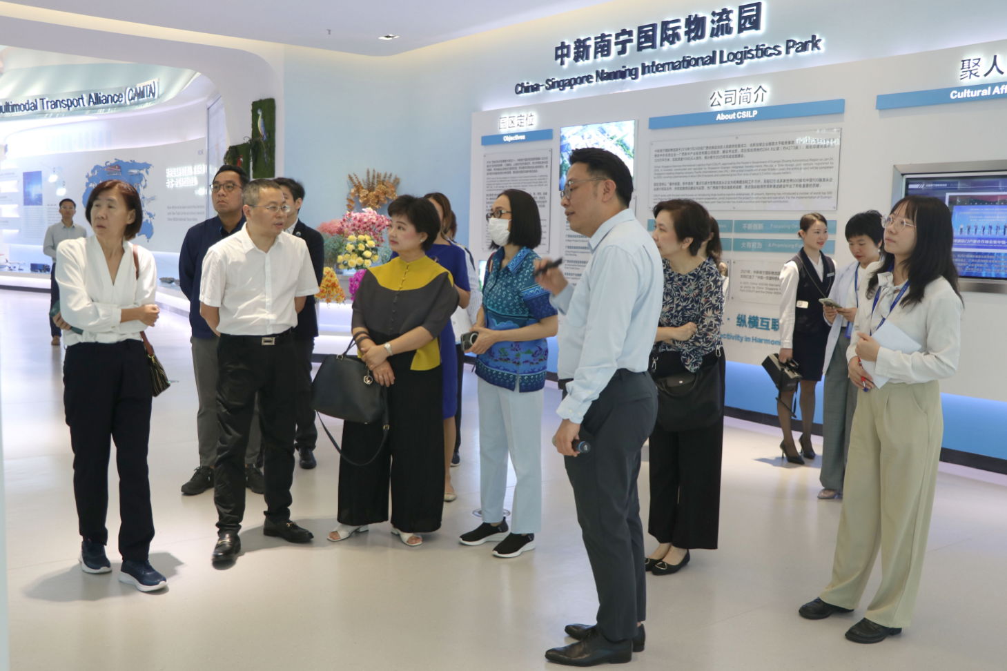 2023年6月30日,泰國(guó)商業(yè)部巡視組組長(zhǎng)(副司級(jí))素南塔.剛婉古吉女士一行到中新南寧國(guó)際物流園(以下簡(jiǎn)稱“中新物流園”)、中國(guó)—東盟特色商品匯聚中心(以下簡(jiǎn)稱“匯聚中心”)考察,就進(jìn)一步提升中泰兩國(guó)在經(jīng)貿(mào)領(lǐng)域的合作與交流展開探討。廣西新中產(chǎn)業(yè)投資有限公司副總經(jīng)理商紅熱情接待了巡視組一行。