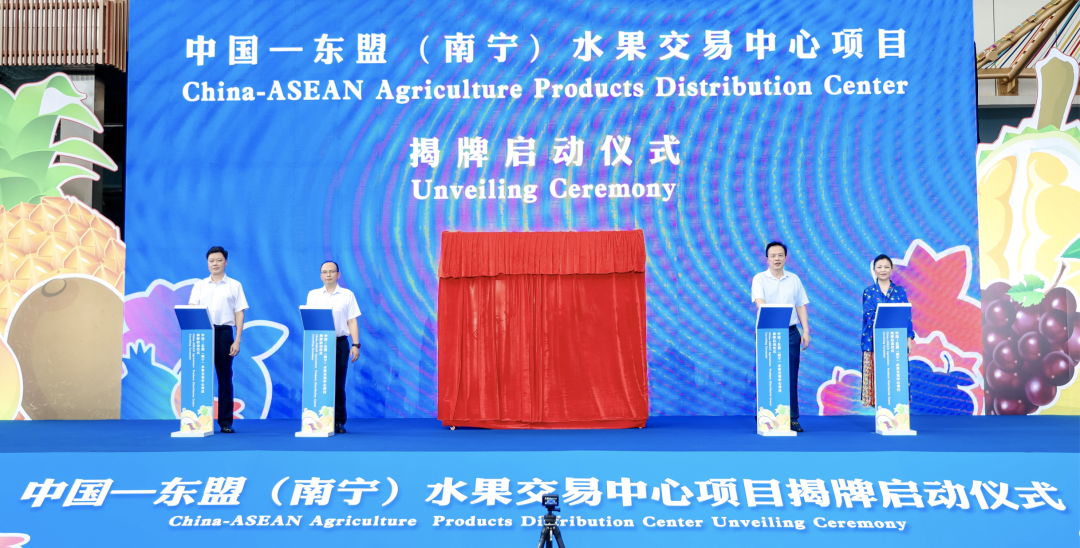 東盟好水果,新鮮零距離。2023年8月27日上午,中國(guó)—東盟(南寧)水果交易中心項(xiàng)目揭牌啟動(dòng)儀式在中國(guó)—東盟特色商品匯聚中心隆重舉行。廣西壯族自治區(qū)商務(wù)廳黨組成員、副廳長(zhǎng)粟堅(jiān),廣西壯族自治區(qū)南寧市委常委、南寧市人民政府副市長(zhǎng)、黨組副書(shū)記陳竑,廣西壯族自治區(qū)南寧高新技術(shù)產(chǎn)業(yè)開(kāi)發(fā)區(qū)管理委員會(huì)黨工委書(shū)記李耕,廣西新中產(chǎn)業(yè)投資有限公司、中國(guó)—東盟特色商品匯聚中心董事長(zhǎng)趙海燕等出席,廣西壯族自治區(qū)南寧市人民政府副秘書(shū)長(zhǎng)劉桂發(fā)主持活動(dòng)。