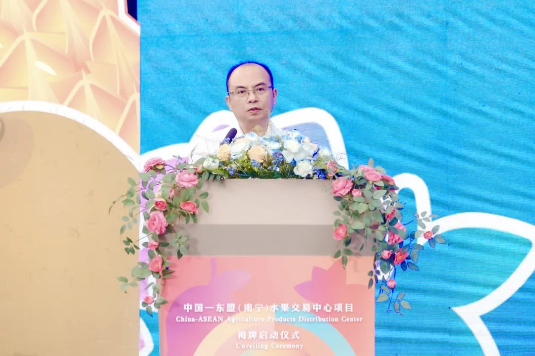 粟堅(jiān)副廳長(zhǎng)在致辭中表示,廣西壯族自治區(qū)政府高度重視中國(guó)—東盟水果交易中心建設(shè),并將其列為中國(guó)—東盟產(chǎn)業(yè)合作區(qū)的前期成果性項(xiàng)目。通過(guò)推動(dòng)在崇左、南寧、欽州三地建設(shè)中國(guó)—東盟水果交易中心,圍繞“買(mǎi)全國(guó)、賣(mài)東盟,買(mǎi)東盟,賣(mài)全國(guó)”的目標(biāo),致力于打造面向全國(guó)和東盟各國(guó)的水果分撥中心、交易中心、加工中心,實(shí)現(xiàn)中國(guó)—東盟水果交易、展示、結(jié)算、倉(cāng)儲(chǔ)、加工、物流、通關(guān)的高度集聚。他強(qiáng)調(diào),要把中國(guó)—東盟水果交易中心建設(shè)成為國(guó)內(nèi)國(guó)際雙循環(huán)的重要節(jié)點(diǎn)樞紐,更好的服務(wù)“一帶一路”和中國(guó)—東盟自貿(mào)區(qū)建設(shè)。