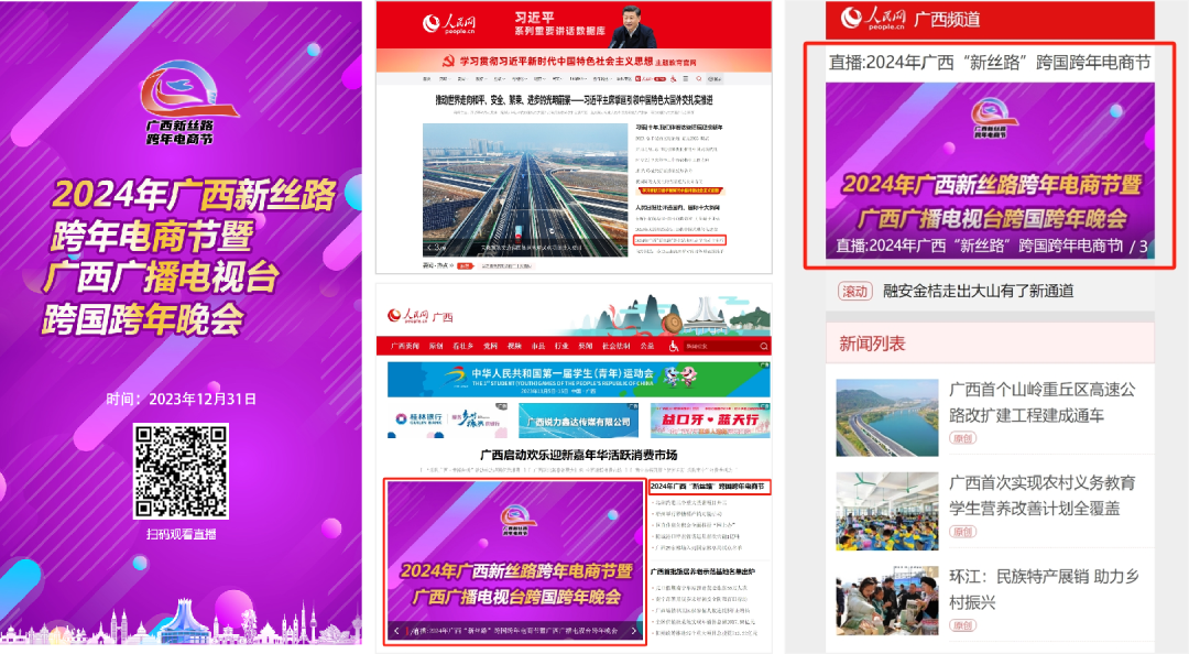 晚會通過廣西廣播電視臺直播,信號覆蓋228個國家及地區(qū),老撾國家電視臺、柬埔寨國家電視臺、越南數(shù)字電視臺、緬甸國家廣播電視臺等海外媒體平臺以及中央廣播電視總臺、新華社、人民網(wǎng)、廣西日報、廣西廣播電視臺、今日頭條、抖音等國內(nèi)主流媒體構(gòu)建宣傳報道“云平臺”,形成融媒體矩陣進行直播或宣發(fā),持續(xù)制造熱點話題,提高全網(wǎng)總關(guān)注度,打造“廣西最火跨年夜”。