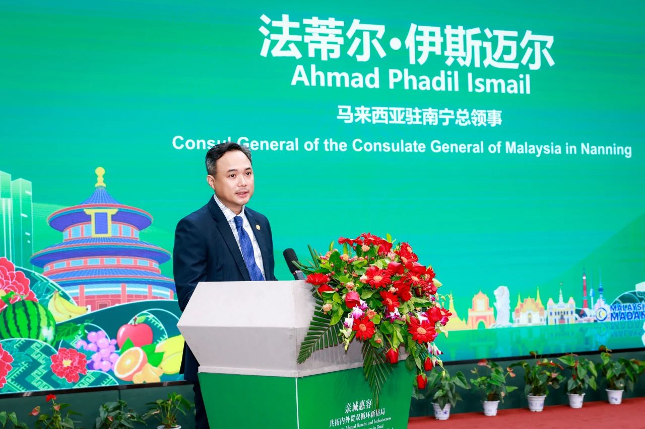朱雁玲在致辭中表示,馬來西亞是中國—東盟水果貿(mào)易的重要樞紐,同時在推動全球清真產(chǎn)業(yè)發(fā)展中發(fā)揮著重要作用。匯聚中心既是經(jīng)貿(mào)合作的交流平臺,也是文化互動的“會客廳”,我們與匯聚中心聯(lián)合舉辦此次活動,旨在助力暢通廣西企業(yè)與東盟特別是馬來西亞市場之間的經(jīng)貿(mào)通道,讓更多“廣西優(yōu)質(zhì)好物”與“馬來特色商品”互通有無。
