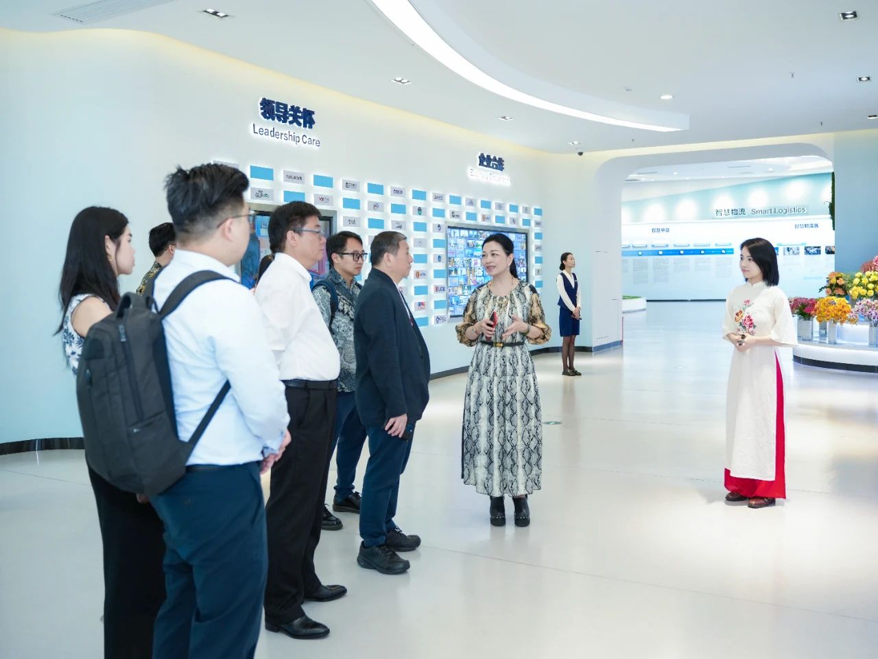 步入?yún)R聚中心,陳海泉大使便被新加坡展館門(mén)口的魚(yú)尾獅所吸引,特意駐足拍攝。進(jìn)入展館后,考察組沉浸式體驗(yàn)了璀璨星空走廊、垂直綠化的花園城市與組屋街區(qū)等場(chǎng)景,紛紛表示很開(kāi)心能在廣西看到一個(gè)多維度呈現(xiàn)“獅城”獨(dú)特風(fēng)貌的地方,漫步其中恍若回到新加坡,倍感親切。同時(shí),考察組充分認(rèn)可了匯聚中心線上線下相結(jié)合的創(chuàng)新理念,并就未來(lái)在經(jīng)貿(mào)、物流等領(lǐng)域的合作與匯聚中心團(tuán)隊(duì)進(jìn)行了交流并達(dá)成共識(shí)。