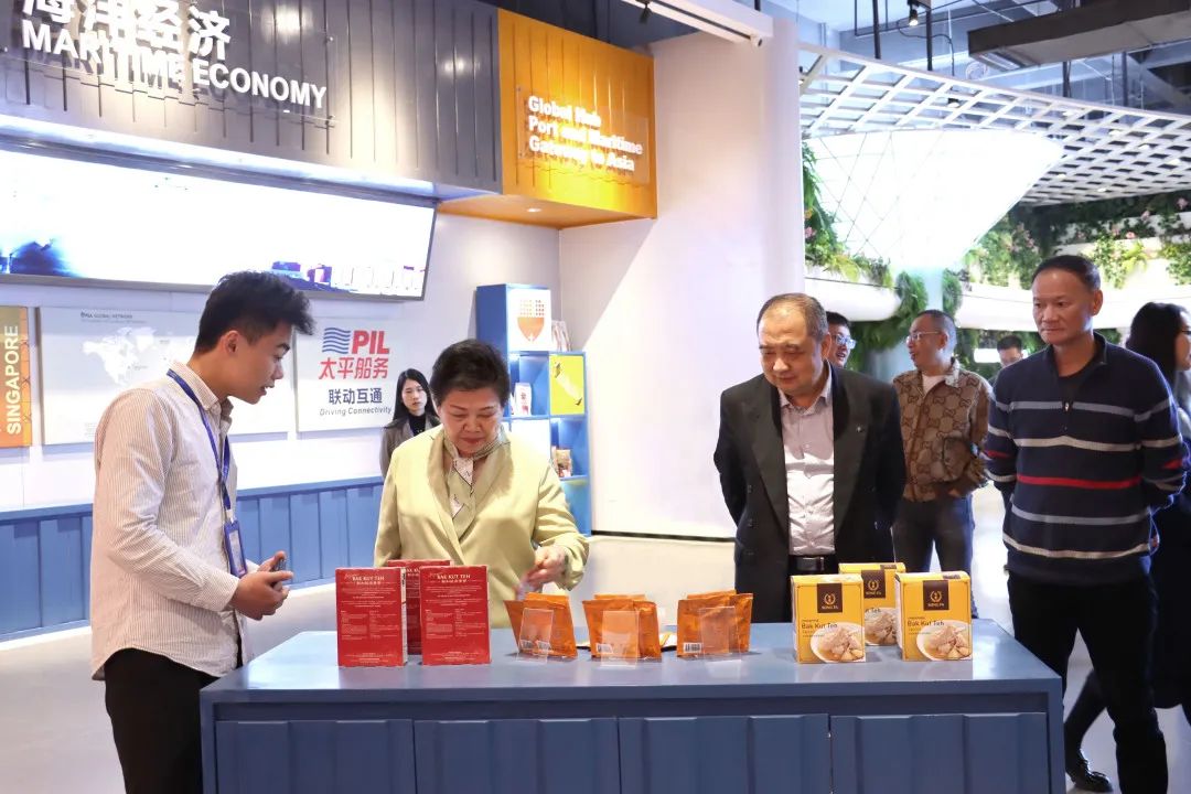 位于園區(qū)內(nèi)的中國(guó)—東盟特色商品匯聚中心,是中新南寧國(guó)際物流園與中國(guó)—東盟博覽會(huì)秘書處聯(lián)合重點(diǎn)打造的項(xiàng)目,致力于搭建中國(guó)與東盟、RCEP其他區(qū)域國(guó)家乃至“一帶一路”沿線重要國(guó)家經(jīng)貿(mào)往來(lái)線上線下一站式首選平臺(tái)。在參觀匯聚中心的過(guò)程中,考察團(tuán)聽(tīng)取了展館的設(shè)計(jì)理念,對(duì)館內(nèi)琳瑯滿目的特色商品表現(xiàn)出濃厚的興趣。認(rèn)為匯聚中心線下展館不僅設(shè)計(jì)別出心裁,而且能夠通過(guò)線上平臺(tái)一站式購(gòu)買各式東盟乃至RCEP其他區(qū)域國(guó)家的特色商品,比如新加坡的肉骨茶、泰國(guó)的醬料、澳大利亞的紅酒等,對(duì)商家及消費(fèi)者來(lái)說(shuō)將是一種全新的沉浸式商貿(mào)體驗(yàn),同時(shí)匯聚中心提供的商品免費(fèi)展示空間,能夠降低入駐商家的運(yùn)營(yíng)成本,為企業(yè)提供了良好的服務(wù)平臺(tái)。