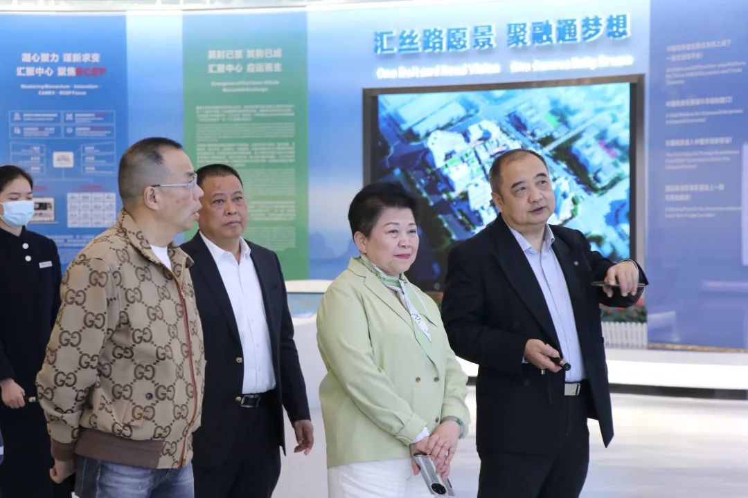 廣西壯族自治區(qū)黨委統(tǒng)戰(zhàn)部一級(jí)調(diào)研員、廣西僑商會(huì)常務(wù)副會(huì)長(zhǎng)楊真標(biāo),廣西僑商會(huì)常務(wù)副會(huì)長(zhǎng)、輪值會(huì)長(zhǎng)、廣西桂林萬(wàn)靈置業(yè)投資有限公司執(zhí)行董事黃江玲,廣西僑商會(huì)常務(wù)副會(huì)長(zhǎng)、廣西粵玖實(shí)業(yè)有限公司董事長(zhǎng)鄺升,廣西僑商會(huì)監(jiān)事長(zhǎng)、廣西方凱酒店管理有限責(zé)任公司董事長(zhǎng)黃少紅,廣西僑商會(huì)秘書長(zhǎng)蔣文釗,怡海集團(tuán)辦公室主任薛淑良,怡海集團(tuán)投資部經(jīng)理崔宇赟,中國(guó)—東盟特色商品匯聚中心副總經(jīng)理盧春梅等陪同考察。